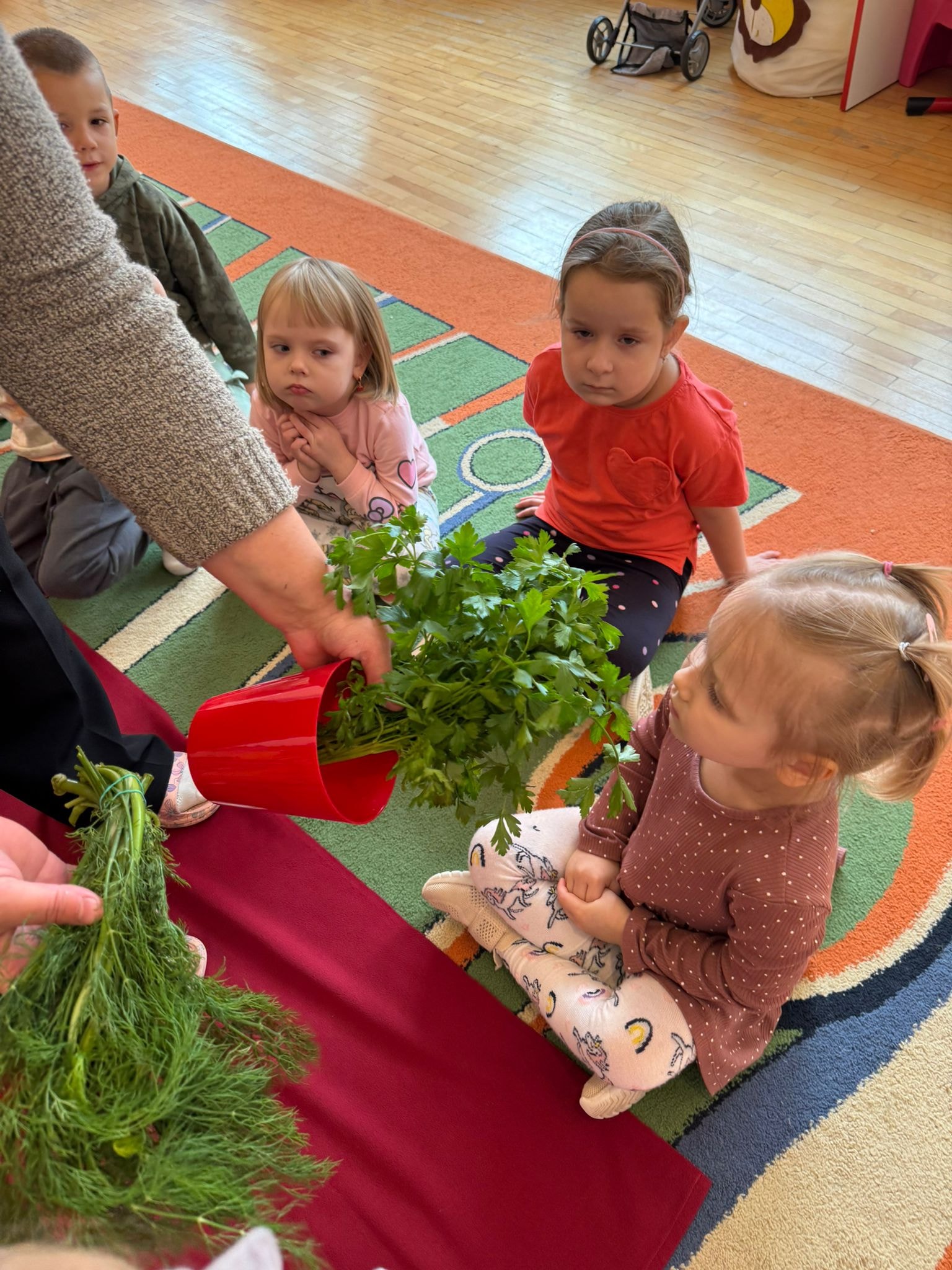 ,,Wiewiórki" - zajęcia otwarte pt.:,,Na straganie w dzień targowy, czyli opowieści o cudownej mocy owoców i warzyw".🍏🍎🍇🍅🍊🥔🥕🌶️